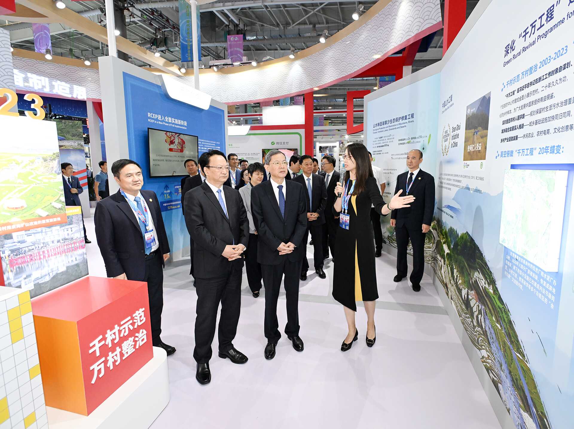 8月23日,第十四届中国—东北亚博览会开幕式暨第十二届东北亚合作高层论坛在长春隆重举行。全国人大常委会副委员长郝明金在省委书记景俊海,省委副书记、省长胡玉亭陪同下,巡视现代装备与新能源合作馆、现代农业馆、吉林馆、省区市合作馆等展馆。邹乃硕 摄