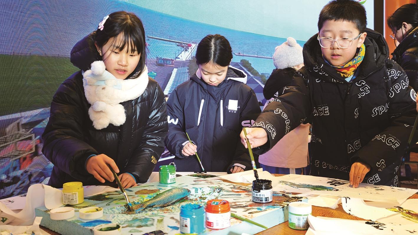 孩子们体验传统非遗技艺鱼拓。