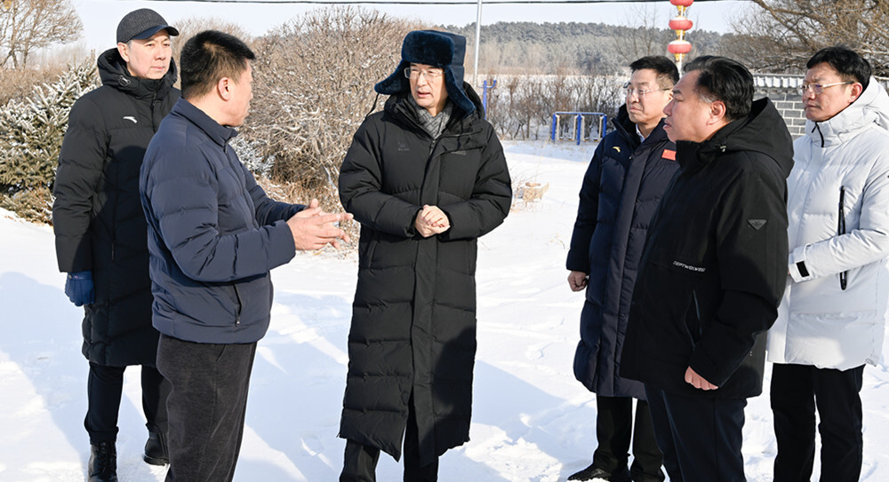 1月10日,省委书记黄强以“四不两直”方式到四平市梨树县郭家店镇孙家屯村实地检查乡村振兴工作,与村干部交谈了解相关情况。张野 摄