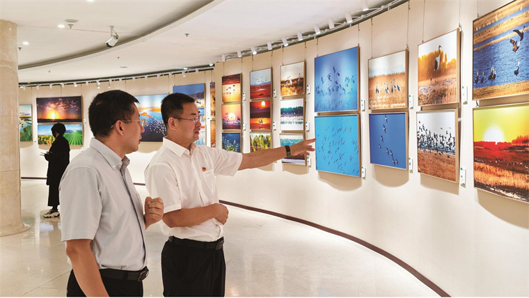 向海、莫莫格主题摄影美术展在北京、杭州、长沙等地巡展,生动展现白城市湿地生态保护成果,立体呈现向海、莫莫格自然保护区“湿地双IP”生态旅游改革试点成效。 郑春生 摄